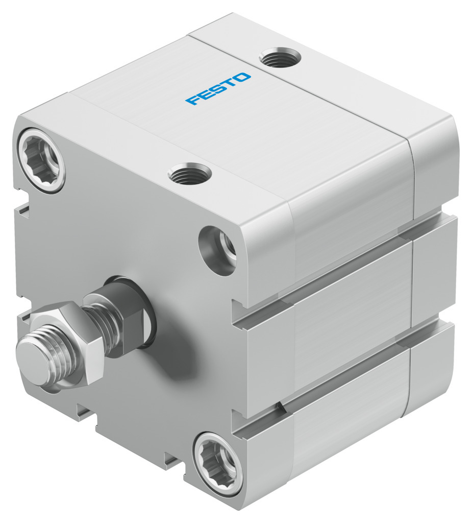 Kompaktzylinder ADN-63-20-A-P-A nach ISO 21287, für Positionserkennung, mit Außengewinde an der Kolbenstange. Hub=20 mm, Kolben-Durchmesser=63 mm, Kolbenstangengewinde=M12x1,25, Dämpfung=P: elastische Dämpfungsringe/-platten beidseitig, Einbaulage=beliebig