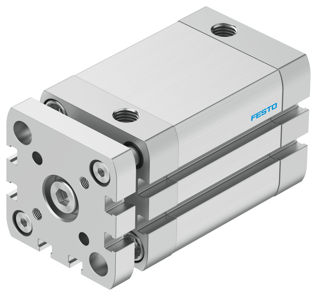 Kompaktzylinder ADNGF-40-40-P-A nach ISO 21287, mit Gleitführung, Kolbenstange verdrehgesichert durch Führungsstange und Jochplatte. Hub=40 mm, Kolben-Durchmesser=40 mm, Basierend auf Norm=ISO 21287, Dämpfung=P: elastische Dämpfungsringe/-platten beidseitig, Einbaulage=beliebig