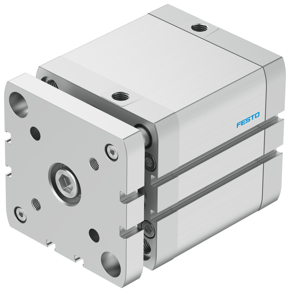 Kompaktzylinder ADNGF-80-50-P-A nach ISO 21287, mit Gleitführung, Kolbenstange verdrehgesichert durch Führungsstange und Jochplatte. Hub=50 mm, Kolben-Durchmesser=80 mm, Basierend auf Norm=ISO 21287, Dämpfung=P: elastische Dämpfungsringe/-platten beidseitig, Einbaulage=beliebig