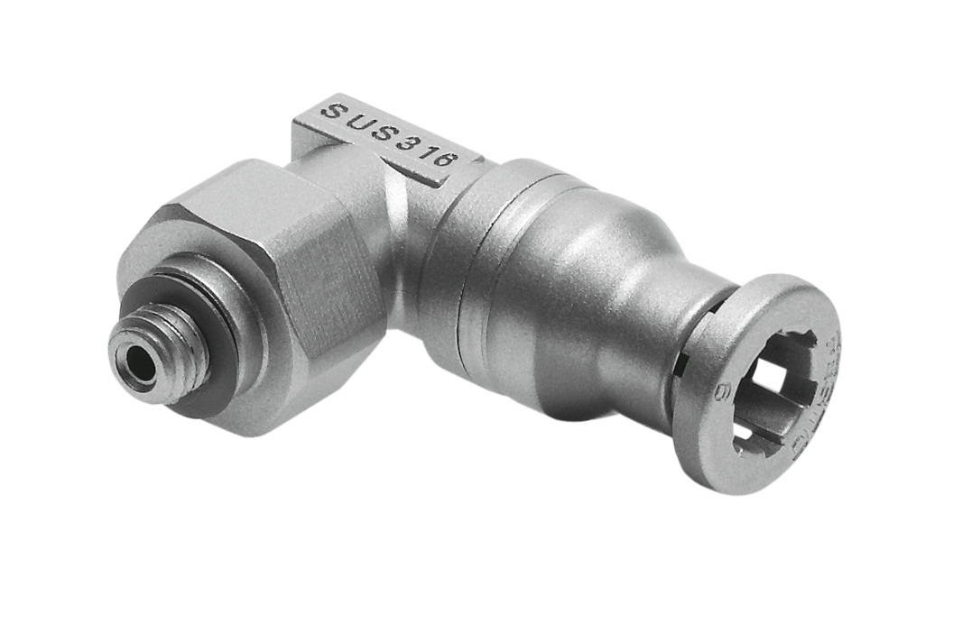 L-Steckverschraubung CRQSL-M5-4 L-Steckverschraubung CRQSL-M5-4 Edelstahlausführung; L-Form; Mit Außensechskant; Außengewinde M5; Für Schlauch Außen-Ø 4 mm; Packungsmenge 1 Stück; Lebensmitteltauglichkeit