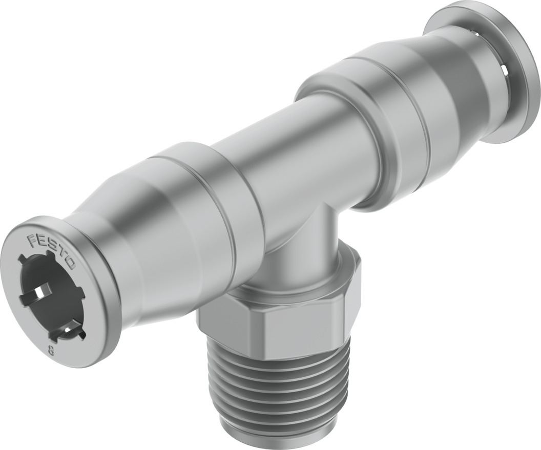T-Steckverschraubung CRQST-1/4-8 T-Steckverschraubung CRQST-1/4-8 Edelstahlausführung; T-Form; Mit Außensechskant; Außengewinde R1/4; Für Schlauch Außen-Ø 8 mm; Packungsmenge 1 Stück; Lebensmitteltauglichkeit
