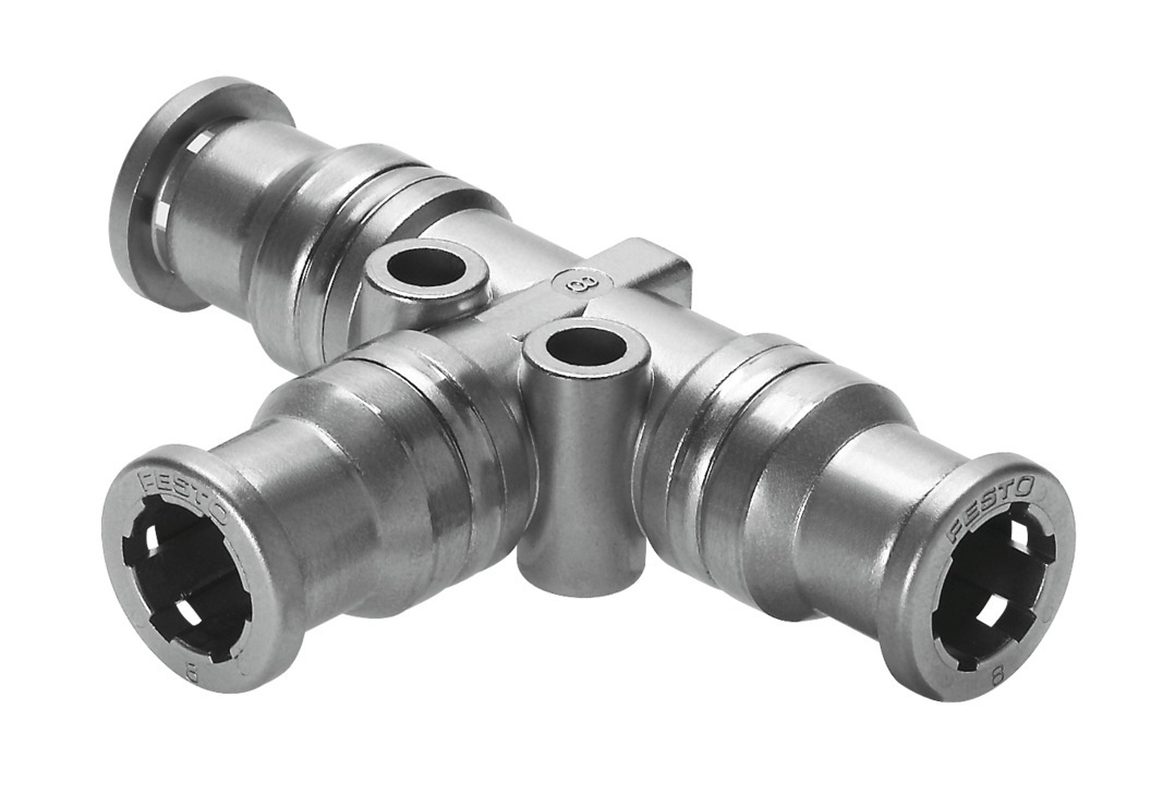 T-Steckverbindung CRQST-16 T-Steckverbindung CRQST-16 Edelstahlausführung; T-Form; Für Schlauch Außen-Ø 16 mm; Gleiche Größe wie Anschluss 1; Packungsmenge 1 Stück; Lebensmitteltauglichkeit