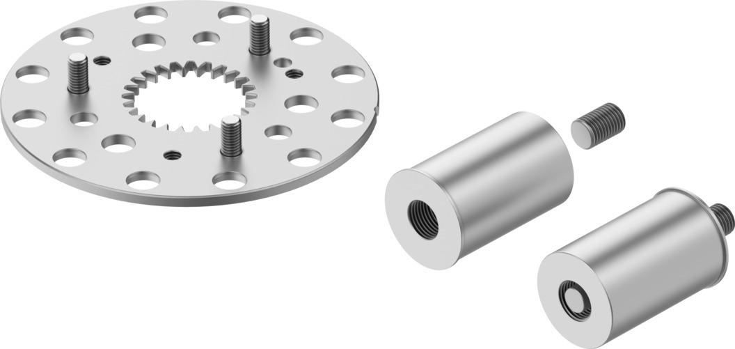 Teilungsbausatz DADM-CK-90-12 für Rundschalttisch DHTG. Baugröße=90, Korrosionsbeständigkeitsklasse KBK=(* 2 - mäßige Korrosionsbeanspruchung, * (im eingebauten Zustand)), Werkstoffhinweis=(* Kupfer- und PTFE-frei, * RoHS konform), Werkstoff Platte=Stahl, Werkstoff Schrauben=Stahl