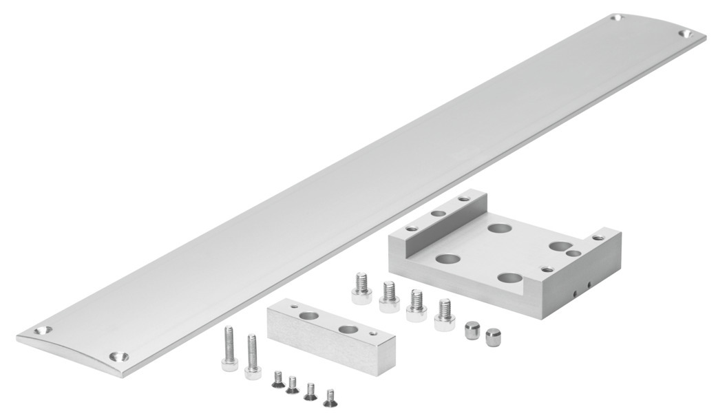 Abdeckungsbausatz EASC-S1-26-150 zur Abdeckung des nach oben offenen Achsprofils. Baugröße=26, Einbaulage=beliebig, Korrosionsbeständigkeitsklasse KBK=2 - mäßige Korrosionsbeanspruchung, Umgebungstemperatur=-10 - 60 °C, Produktgewicht=234 g