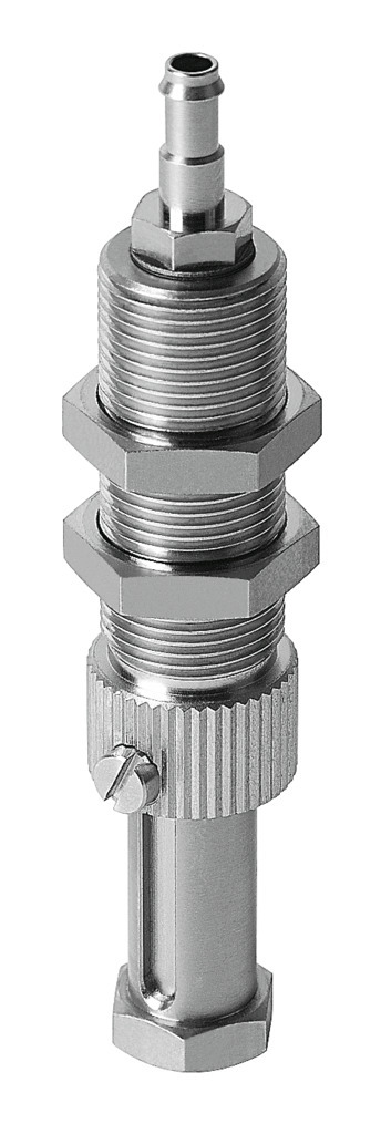 Vakuumsauger-Halter ESH-HCL-3-PK mit langem Höhenausgleich, Vakuumanschluss oben, Befestigung des Halters mittels zwei Sechskantmuttern. Höhenausgleich Saugerhalter=20 mm, Volumen=1,383 cm3, Einbaulage=senkrecht, Konstruktiver Aufbau=(* Vakuumanschluss oben, * mit Höhenausgleich), Zuordnung Saugerhalter=Größe 3
