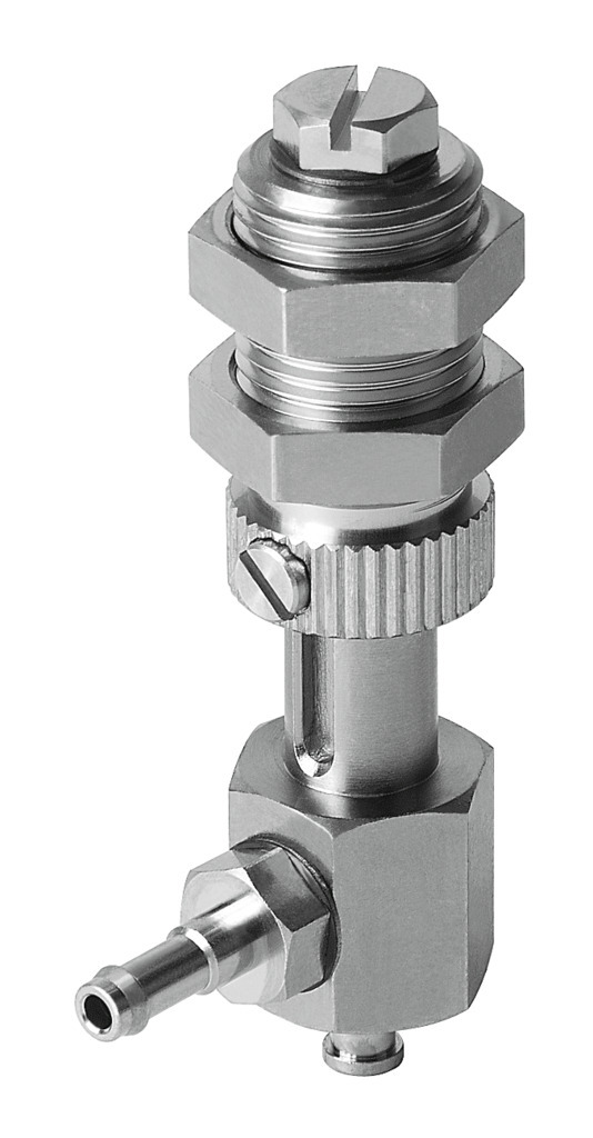 Vakuumsauger-Halter ESH-HDL-2-PK mit langem Höhenausgleich, Vakuumanschluss seitlich, Befestigung des Halters mittels zwei Sechskantmuttern. Höhenausgleich Saugerhalter=10 mm, Volumen=0,138 cm3, Einbaulage=senkrecht, Konstruktiver Aufbau=(* Vakuumanschluss seitlich, * mit Höhenausgleich), Zuordnung Saugerhalter=Größe 2