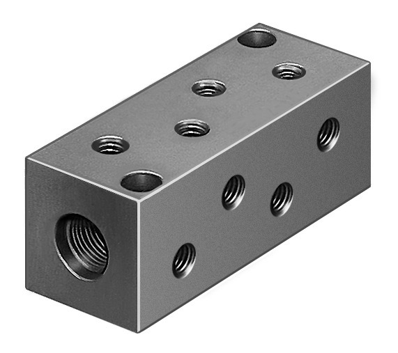 Verteilerblock FR-12-M5 Verteilerblock FR-12-M5 Quaderform; 12 Abgänge; Innengewinde G1/8; Innengewinde M5; Aluminium, eloxiert