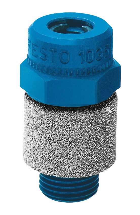 Abluftdrosselventil GRE-3/8 mit integriertem Sintermetall-Schalldämpfer zur Abluftdrosselung an Ventilen bestimmter Bauart. Ventilfunktion=Drossel-Schalldämpfer-Funktion, Pneumatischer Anschluss 1=G3/8, Einstellelement=Schlitzschraube, Befestigungsart=einschraubbar, Normalnenndurchfluss in Drosselrichtung=2000 l/min