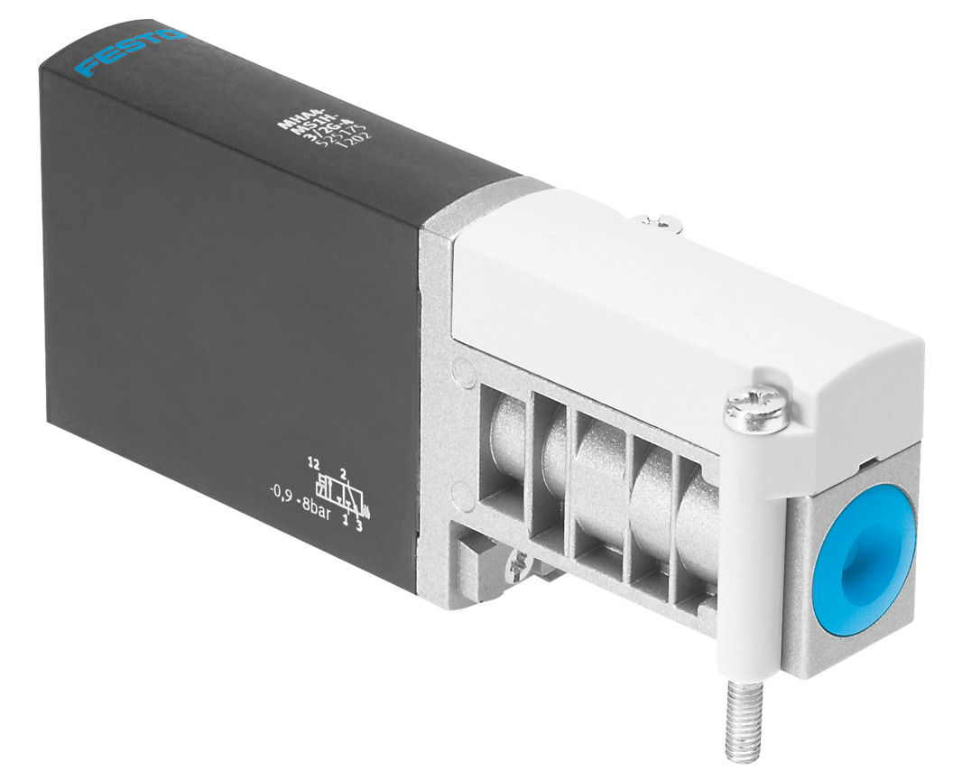 Magnetventil MHA4-MS1H-3/2G-4 Einzelventil, schnellschaltend. Ventilfunktion=3/2 geschlossen monostabil, Betätigungsart=elektrisch, Baubreite=18 mm, Normalnenndurchfluss=400 l/min, Betriebsdruck Mpa=-0,09 - 0,8 MPa