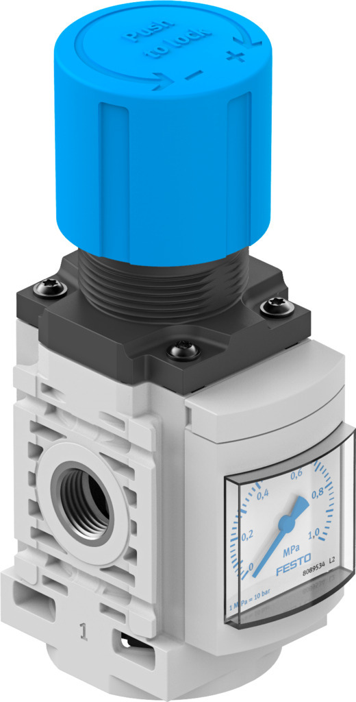 Druckregelventil MS4-LR-1/4-D6-AG-MPA-B Baugröße=4, Baureihe=MS, Betätigungssicherung=Drehknopf mit Arretierung, Einbaulage=beliebig, Konstruktiver Aufbau=(* Druckregelventil mit Manometer, * direktgesteuertes Kolbenregelventil)