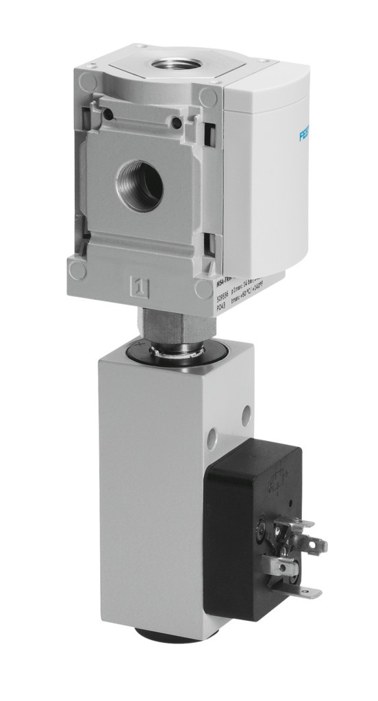 Abzweigmodul MS6-FRM-1/2-Y mit Druckschalter ohne Anzeige, Durchflussrichtung von links nach rechts. Einbaulage=beliebig, Konstruktiver Aufbau=Abzweigmodul, Betriebsdruck=0 - 12 bar, Normalnenndurchfluss in Hauptdurchflussrichtung 1->2=14700 l/min, Normalnenndurchfluss Abgang nach oben=4400 l/min