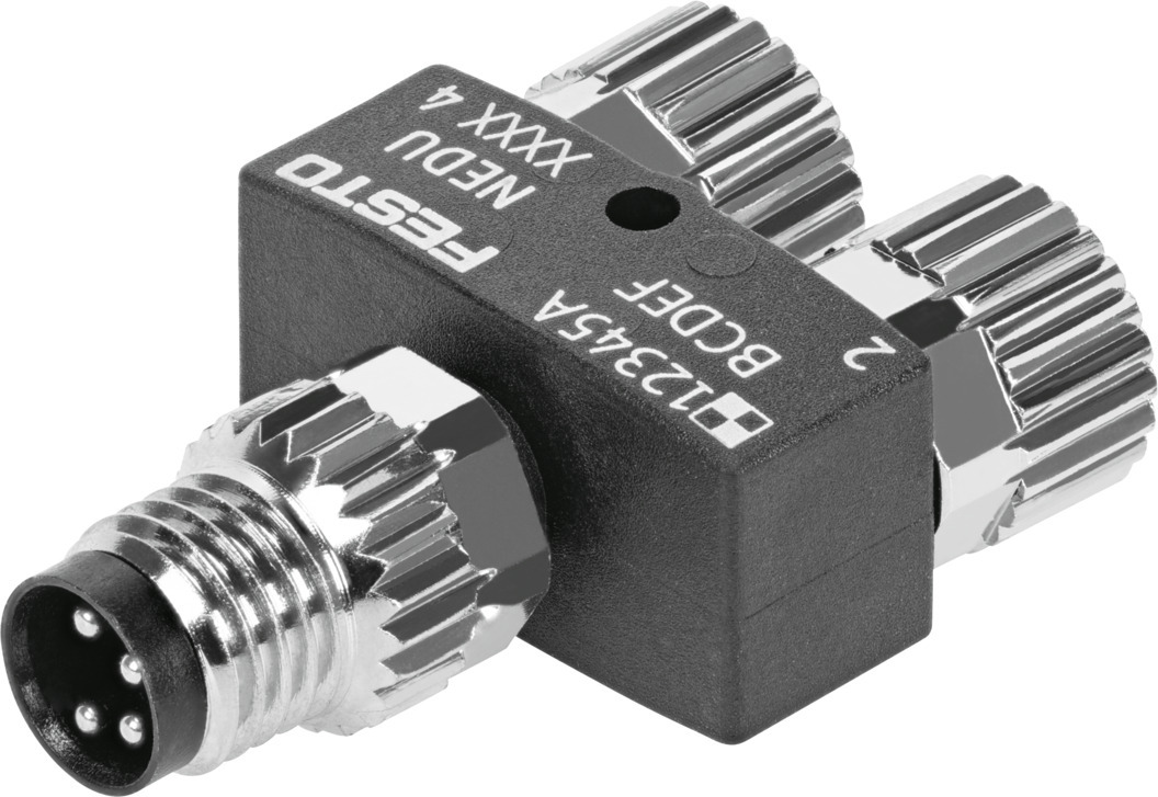 Verteiler NEDY-L2R1-V1-M8G3-N-M8G4 Basierend auf Norm=EN 61076-2-104, Konstruktiver Aufbau=Y-Verteiler ohne Kabel, Verteilerart=2 auf 1, Leitungsbezeichnung=ohne Schildträger, Befestigungsart=(* mit Durchgangsbohrung für Schraube M2, * mit Zubehör)