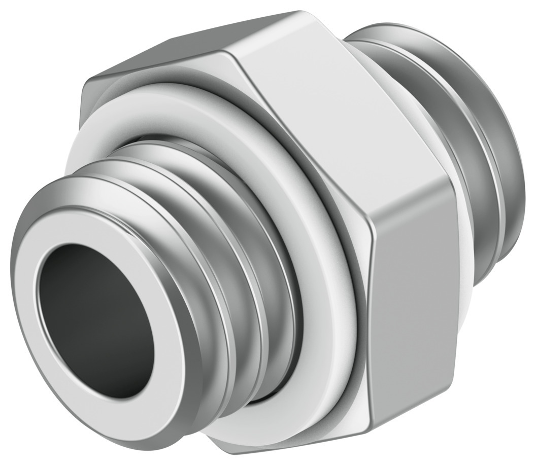 Doppelnippel NPFC-DS-G18-G18-M Werkstoff Gewindeverschraubung=Messing, vernickelt, Gebindegröße=10, Betriebsdruck=-0,95 - 10 bar, Betriebsmedium=Druckluft nach ISO8573-1:2010 [-:-:-], Korrosionsbeständigkeitsklasse KBK=1 - niedrige Korrosionsbeanspruchung