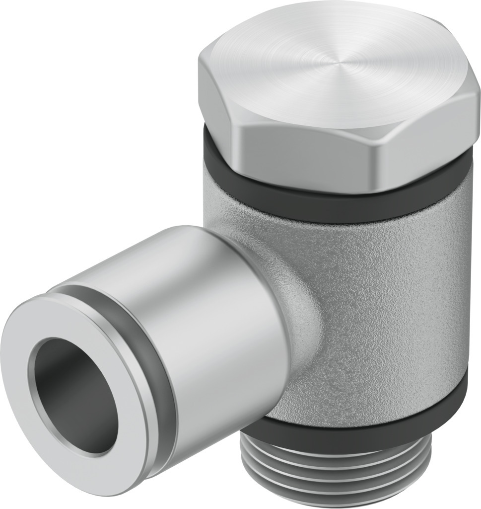 L-Steckverschraubung NPQM-LH-G14-Q8-P10 L-Steckverschraubung NPQM-LH-G14-Q8-P10 Metallausführung; L-Form; Mit Hohlschraube mit Außensechskant; Außengewinde G1/4; Für Schlauch Außen-Ø 8 mm; Packungsmenge 10 Stück
