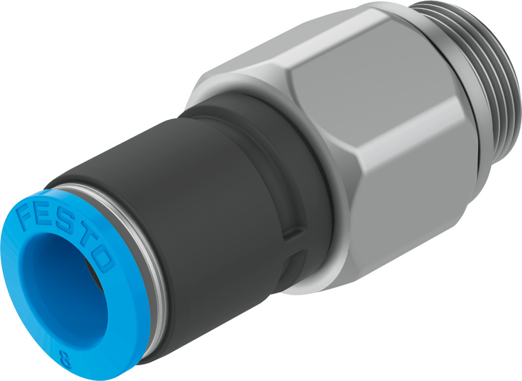 Rotations-Steckverschraubung QSR-G1/8-8 Rotations-Steckverschraubung QSR-G1/8-8 Rotierend; Gerade Form; Außengewinde G1/8; Für Schlauch Außen-Ø 8 mm; Packungsmenge 1 Stück