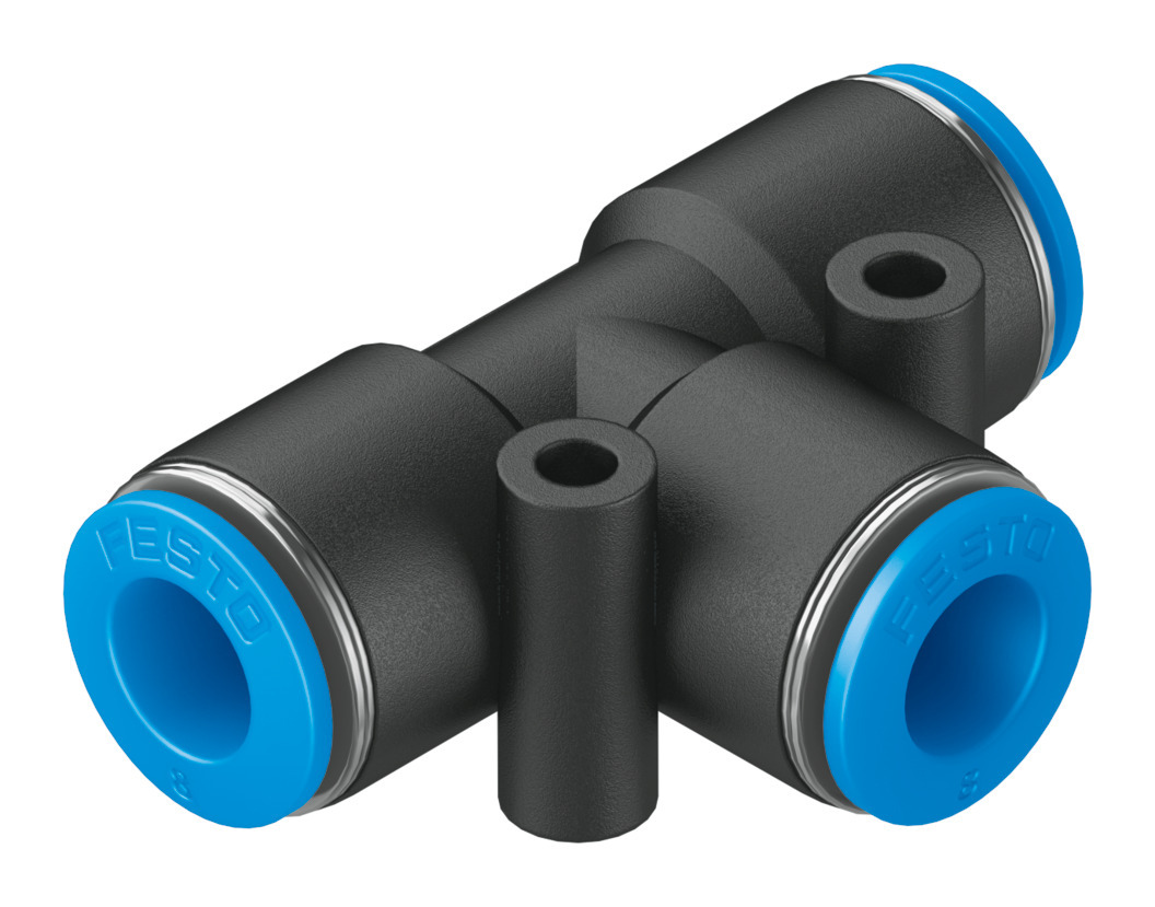 T-Steckverbindung QST-8 T-Steckverbindung QST-8 T-Form; Für Schlauch Außen-Ø 8 mm; Gleiche Größe wie Anschluss 1; Packungsmenge 10 Stück