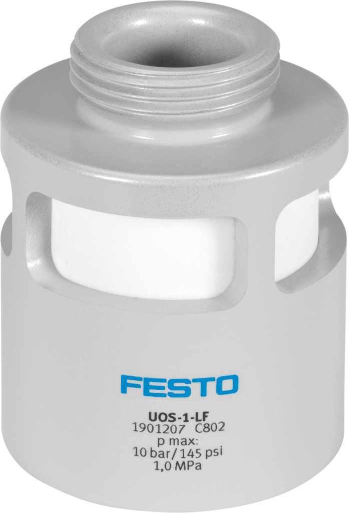 Schalldämpfer UOS-1-LF Schalldämpfer UOS-1-LF Für Druckaufbau- und Entlüftungsventil MS6-SV-D/E; Geringe Entlüftungsleistung; Außengewinde G1; Packungsmenge 1 Stück