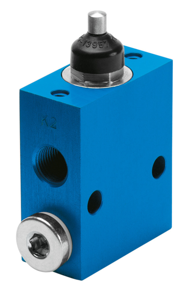 Stößelventil V/O-3-1/8 Je nach Wahl der Anschlüsse die Funktion unbetätigt Durchgang oder kein Durchgang. Ventilfunktion=3/2 offen/geschlossen monostabil, Betätigungsart=mechanisch, Normalnenndurchfluss=140 l/min, Betriebsdruck=-0,95 - 8 bar, Konstruktiver Aufbau=Kolben-Sitz
