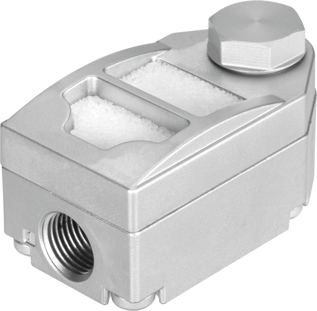 Schnell-Entlüftungsventil VBQF-U-G18-E Ventilfunktion=Schnellentlüftung, Pneumatischer Anschluss 1=G1/8, Pneumatischer Anschluss 2=G1/8, Befestigungsart=einschraubbar, Normaldurchfluss Entlüftung 0,6->0 MPa (6->0 bar, 87->0 psi)=1300 l/min