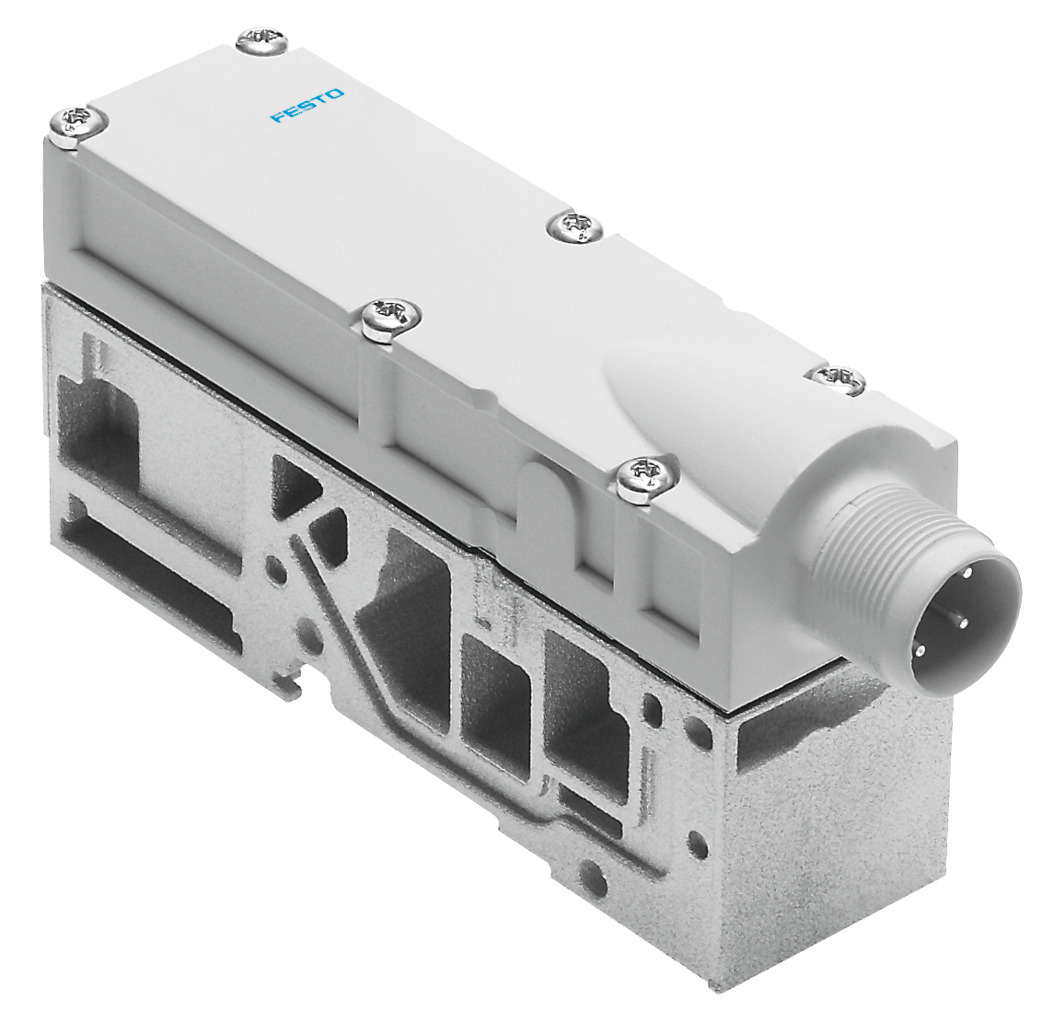 Versorgungsplatte VMPA-FB-SP-7/8-V-4POL für Ventilinsel MPA-S. Nennbetriebsspannung DC=24 V, Zulässige Spannungsschwankungen=+/- 25 %, Korrosionsbeständigkeitsklasse KBK=1 - niedrige Korrosionsbeanspruchung, LABS-Konformität=VDMA24364-B1/B2-L, Schutzart=IP65