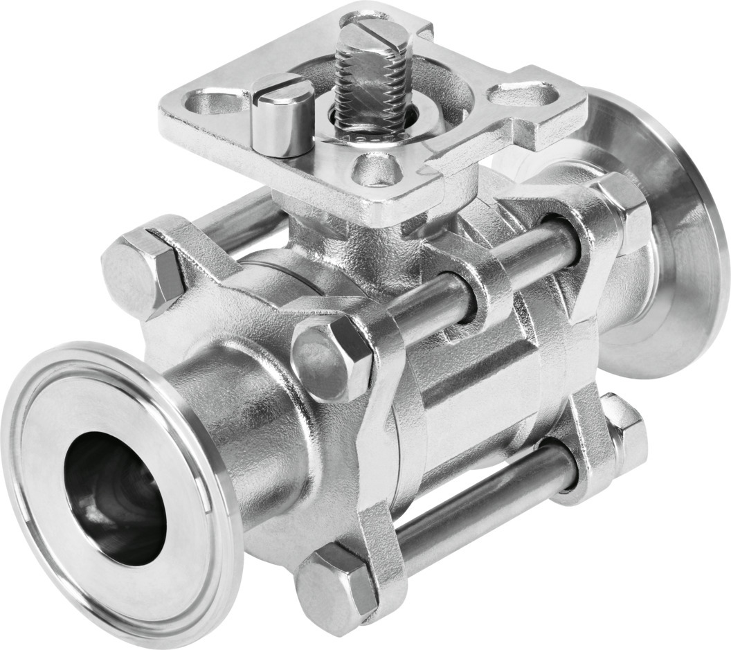 Kugelhahn VZBD-3/4-S5-16-T-2-F0304-V14V14 Kugelhahn VZBD-3/4-S5-16-T-2-F0304-V14V14 DN20; PN16; Klemmstutzen nach DIN 32676; Bohrbild 03 und 04; 2/2-Wege; Betätigung über Antrieb