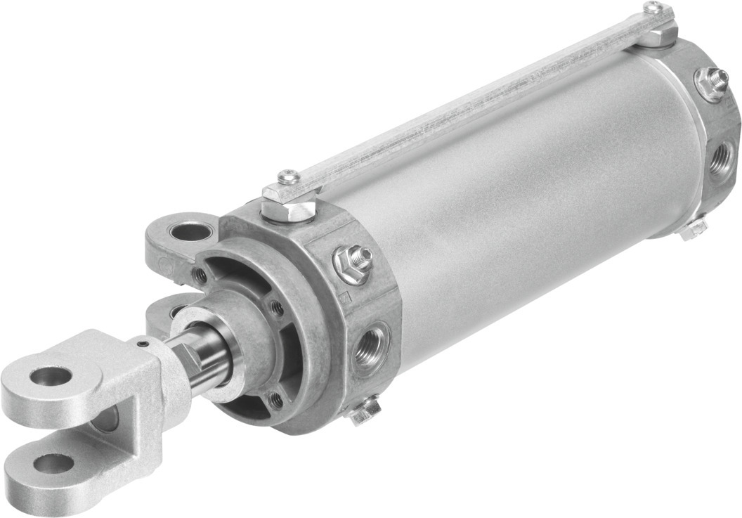 Gelenkzylinder DWB-63-125-Y-A-G Hub=125 mm, Kolben-Durchmesser=63 mm, Kolbenstangengewinde=M16x1,5, Abstand Gabelkopf zur Schwenkbefestigung=19,5 mm, Dämpfung=PPV: pneumatische Dämpfung beidseitig einstellbar