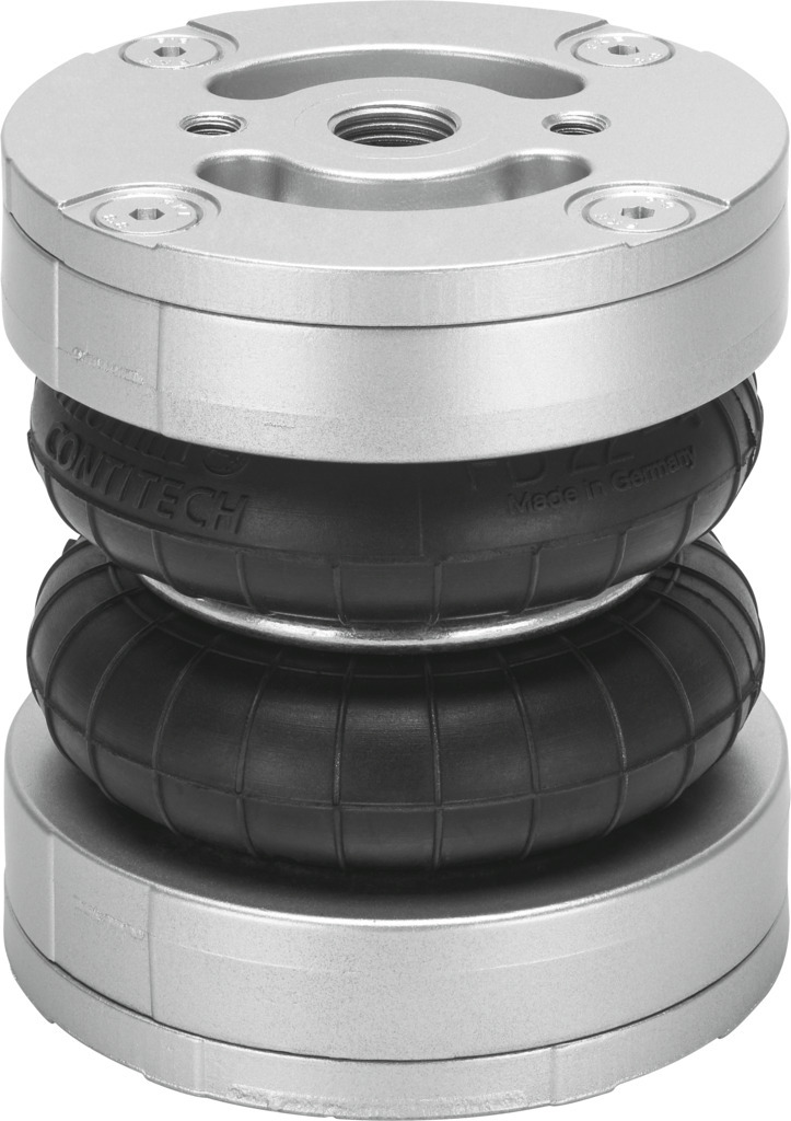 Balgzylinder EB-80-45 wartungsfrei, kein Stick-Slip-Effekt. Baugröße=80, Erforderlicher Einbau-Durchmesser=95 mm, Hub=45 mm, Max. Höhe ausgefahren=110 mm, Max. Kippwinkel=15 deg