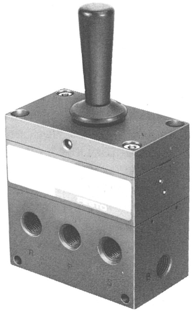 Kipphebelventil H-5/3-1/4 Ventilfunktion=5/3 geschlossen, Betätigungsart=manuell, Normalnenndurchfluss=680 l/min, Betriebsdruck Mpa=0,2 - 1 MPa, Betriebsdruck=2 - 10 bar