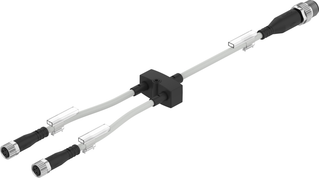 Verteiler NEDY-L2R1-V1-M8G3-U-0.3L-M12G4-2.5R Basierend auf Norm=(* EN 61076-2-101, * EN 61076-2-104), Konstruktiver Aufbau=Y-Verteiler mit Kabel beidseitig, Verteilerart=2 auf 1, Leitungsbezeichnung=mit Schildträger, Befestigungsart=(* mit Durchgangsbohrung für Schraube M2, * mit Zubehör)