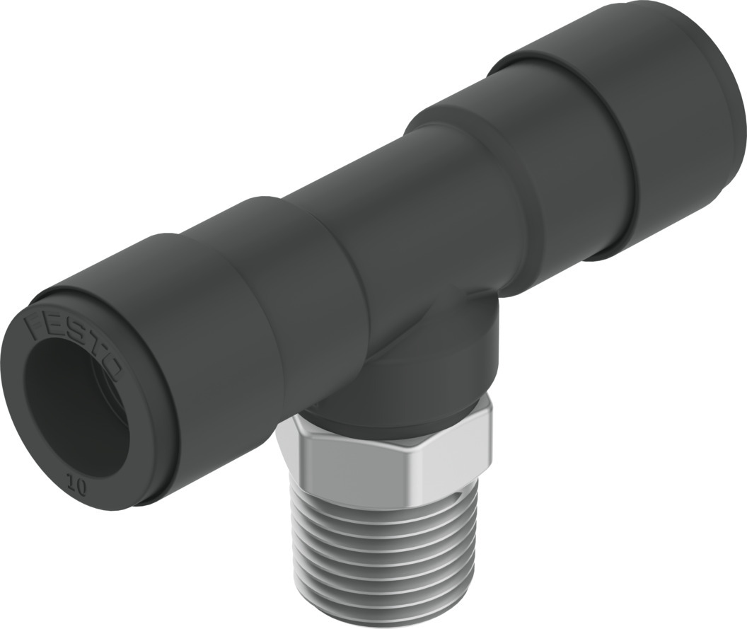 T-Steckverschraubung QST-V0-1/4-8 T-Steckverschraubung QST-V0-1/4-8 Schweißspritzerbeständig; T-Form; Mit Außensechskant; Außengewinde R1/4; Für Schlauch Außen-Ø 8 mm; Packungsmenge 10 Stück