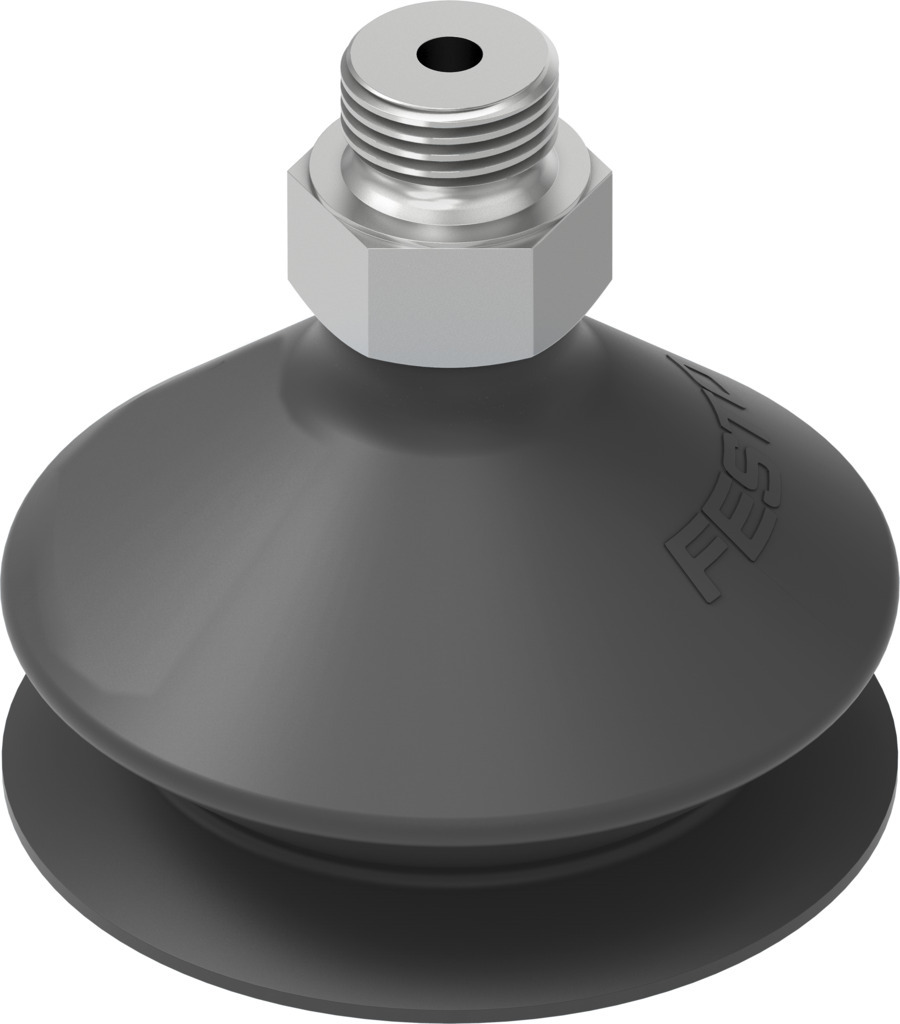 Vakuumsauger VASB-55-1/4-NBR mit Dichtring OL. Nennweite=4 mm, Sauger-Durchmesser=55 mm, Wirksamer Saugdurchmesser=44 mm, Anschlusslage=oben, Saugerform=rund Faltenbalg 1,5-fach
