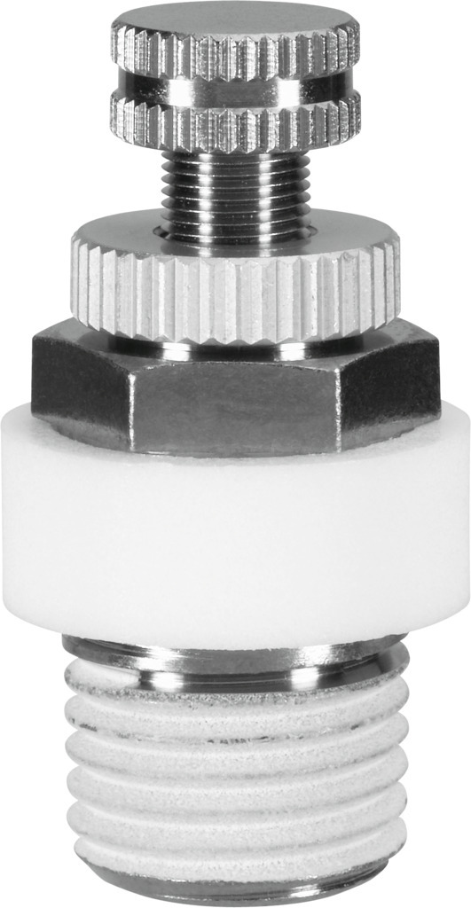 Drossel-Schalldämpfer VFFK-C-K-M7-P Ventilfunktion=Drossel-Schalldämpfer-Funktion, Pneumatischer Anschluss 1=M7, Einstellelement=Rändelschraube, Befestigungsart=einschraubbar, Normaldurchfluss 0,6->0 MPa (6->0 bar, 87->0 psi)=0 - 100 l/min