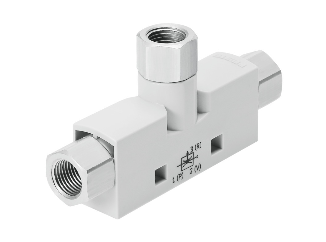 Vakuumsaugdüse VN-07-M-T2-PI2-VI2-RI2 Inline, hoher Unterdruck, Baubreite 10 mm, mit Innengewinde. Nennweite Lavaldüse=0,7 mm, Rastermaß=10 mm, Einbaulage=beliebig, Ejektorcharakteristik=(* hohes Vakuum, * Inline), Konstruktiver Aufbau=T-Form