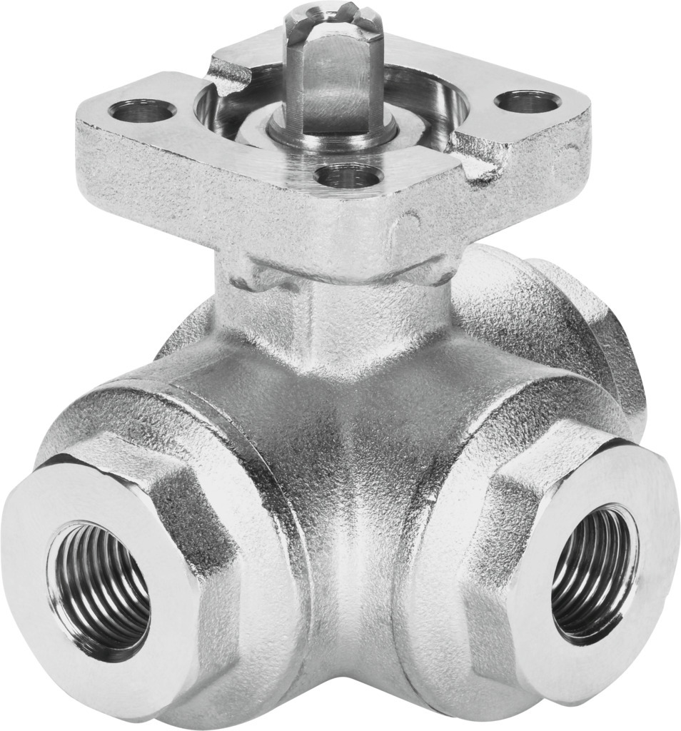 Kugelhahn VZBA-2"-GGG-63-32L-F0507-V4V4T Kugelhahn VZBA-2"-GGG-63-32L-F0507-V4V4T DN50; PN63; Innengewinde Rp2; Bohrbild 05 und 07; 3/2 Wege, L-Bohrung
